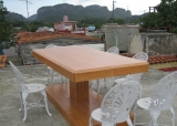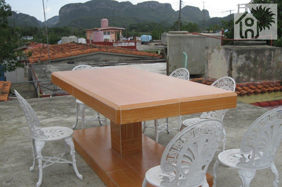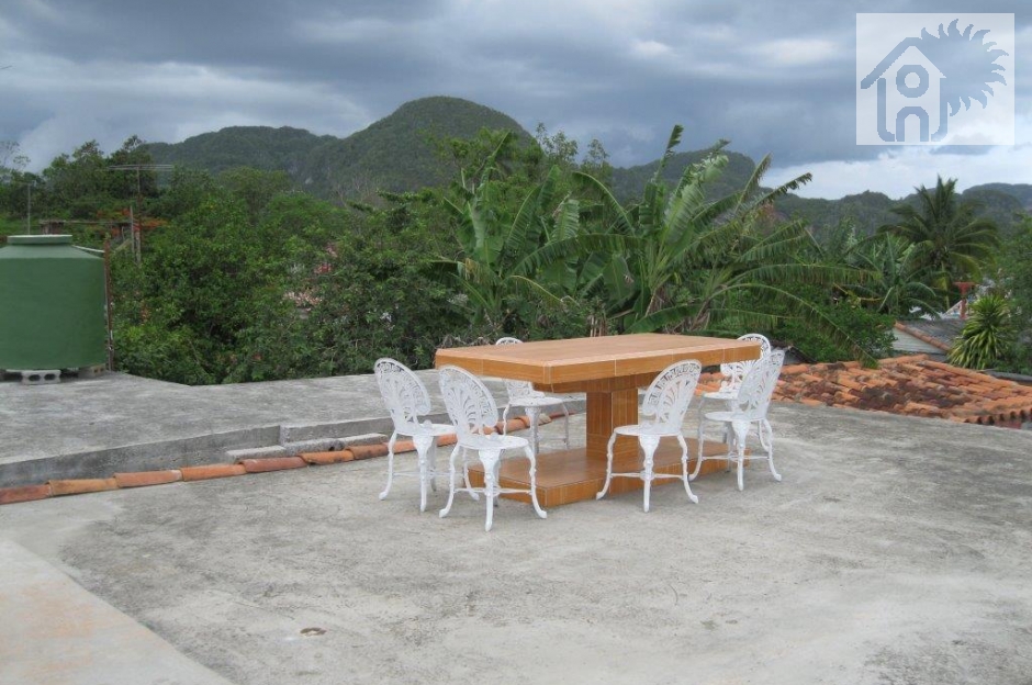 House with two air conditioned and well furnished rooms which comfort is the first goal, cleanliness, natural and artificial lighting. It is special for groups of friends up to 10 people. It is located about 700 m from the town center, so, while still being centrally located, it offers guests the tranquility that always looks approaching Viñales to enjoy ecotourism. From the upper terrace you can see the sunrise and the sunset behind the wooded hills of the Viñales valley. In addition, the hostess greets guests with a welcome cocktail.